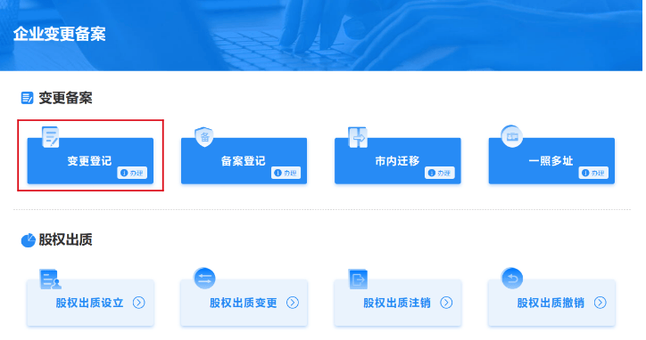 第一步:登录“青岛市企业开办智能一体化平台”(网址:),点击“企业变更”模块。